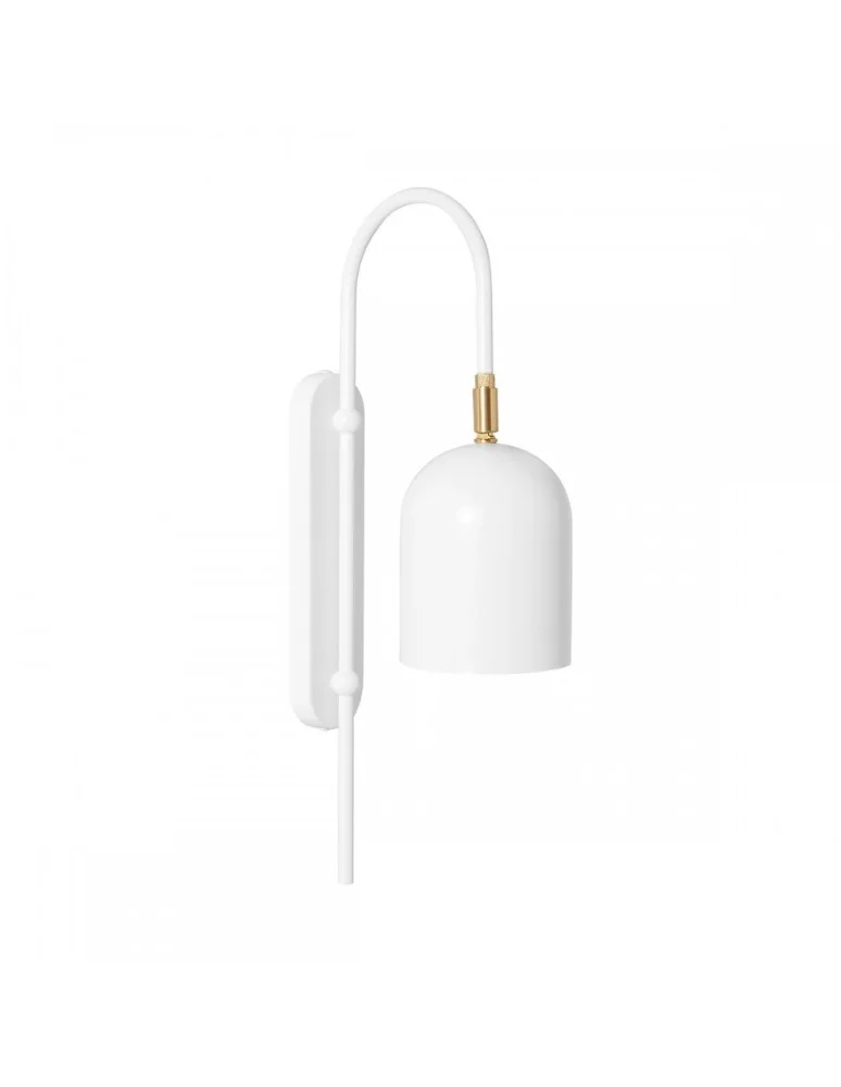 • lampa ścienna kinkiet • wysokość 46 cm • głębokość 27,3 cm • szerokość 11 cm • metalowy klosz lakierowany w kolorze białym strukturalnym • metalowa rama i maskownica sufitowa lakierowana w kolorze białym strukturalnym • przegub z surowego mosiądzu • przewód dwużyłowy 2 X 0.75mm2 • gwint GU10 • max 10W