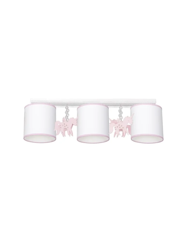 Seria UNI od polskiej marki MiLAGRO to spełnienie marzeń prawie każdej dziewczynki. Połączenie subtelnego, delikatnego różu z bielą oraz motywu jednorożca sprawia, że lampa ta to obowiązkowy dodatek do pokoju miłośniczki tej baśniowej postaci. W skład kolekcji wchodzi: kinkiet, lampa wisząca, sufitowa z dwoma i trzema punktami świetlnymi. Dzięki temu za pomocą tej serii można stworzyć spójny wystrój wnętrza.