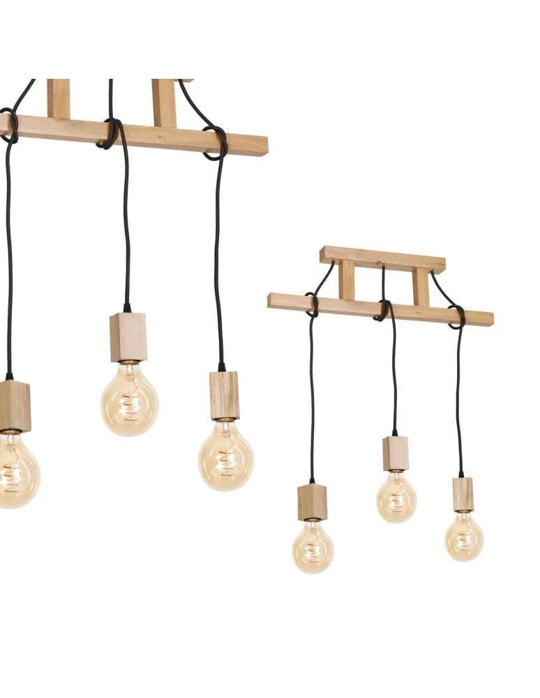 Lampa wisząca JACK 582 to rustykalna propozycja firmy MiLAGRO. Model ten posiada drabinkową podsufitkę, od której odchodzą przewiązane wokół dolnej listwy przewody mogące osiągać długość do 120 cm. Lampa ma drewnianą oprawkę w kształcie kostki, w której można zamontować żarówkę LED o maksymalnej mocy 40 W i gwincie oznaczonym jako E27. Szerokość lampy wynosi 60 cm, a jej głębokość to 7 cm. Źródła światła w postaci żarówki o okrągłej bańce można dokupić osobno. Widoczne punkty światła dodadzą całości uroku.