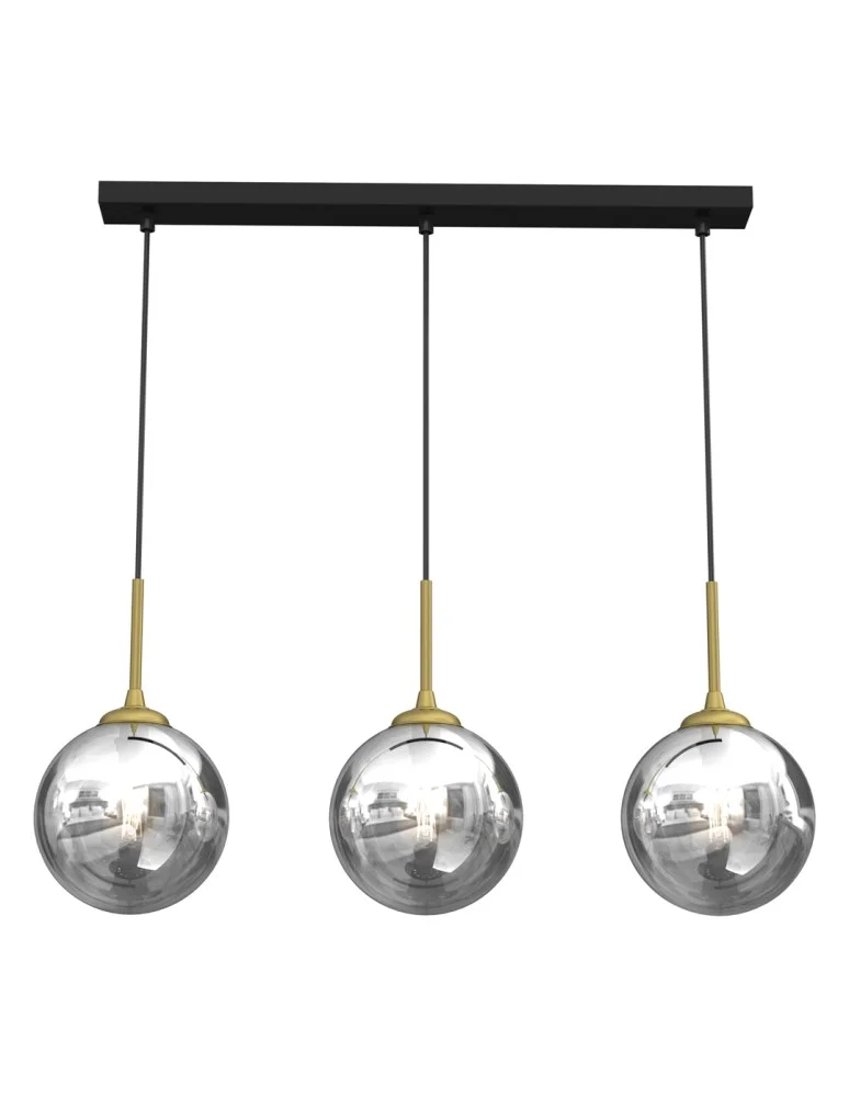 Podłużne lampy w kształcie dymionej kuli dostępne są w kilku rozmiarach. W ofercie są rozmiary zaczynające się od średnicy 140mm i dochodzące do nawet 170mm. Lampy mogą mieć ułożenie regularnych kloszy albo całkowicie asymetryczne ich rozmieszczenie. Lampy mają mocno zamkniętą konstrukcję, dlatego bardzo skupiają światło i są lampami stricte punktowymi. Do kloszy zakładane są żarówki led E14. Jest to lampa w stylu glamour, która w wersji 3-punktowej doskonale sprawdzi się nad stołem w jadalni. W ofercie dostępne są lampy z ustawieniem kloszy symetrycznie lub nieregularnie. Taka różnorodność modeli dostosowana jest do wymagań konkretnych pomieszczeń. Samo mocowanie dymionych kul ma akcent złotawy, co przełamuje szare i srebrne tony dominujące w kolorystyce lampy. Lampa sufitowa z kloszami w rozmiarze 140mm + 200mm + 250mm sprawdzi się w różnego rodzaju pomieszczeniach. To klasyczny wzór, który najciekawiej może komponować się z jasnymi wnętrzami łazienek. Do kloszy zakładane są tutaj żarówki LED E14 i E27. Lampa jest utrzymana w stylu glamour, pasuje do wnętrz klasycznych, ale z nutą nowoczesności. Będzie dobrze oświetlała małe pomieszczenia łazienek i toalet, jednocześnie nadając im przytulności i niepowtarzalnego stylu. Stylowa mieszanka różnych materiałów łączy się w harmonijną całość, która sprawia, że lampa przyciąga wzrok nawet wtedy, gdy jest wyłączona.
