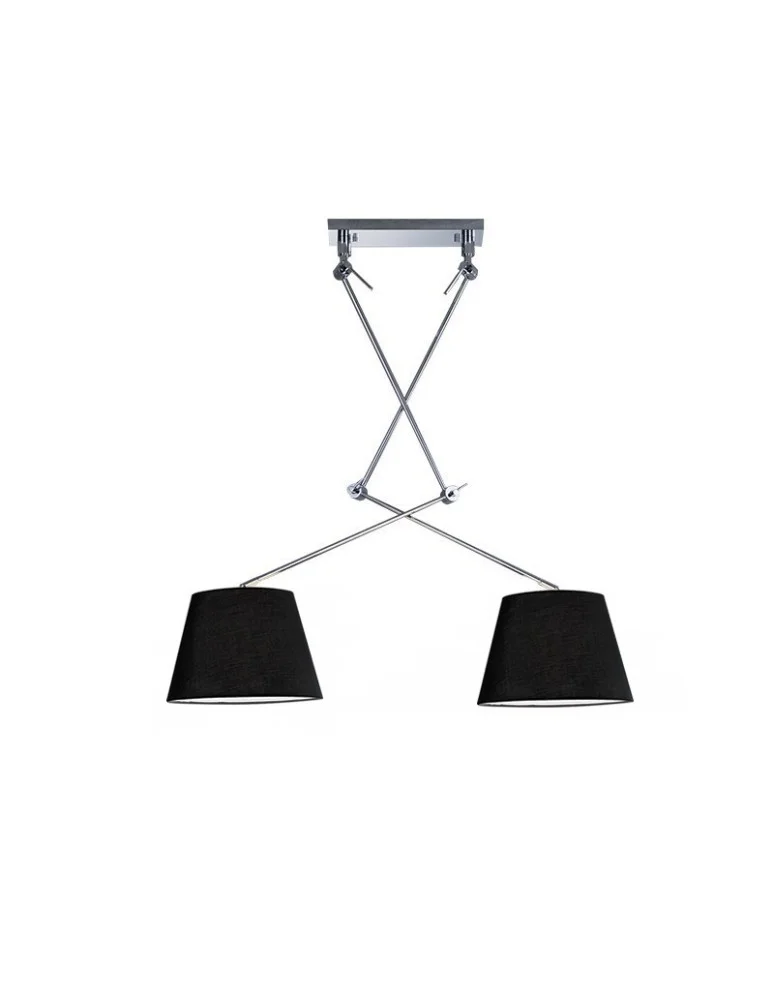 W skład zestawu wchodzi podwójne ramię satyna nikiel (AZ1842) oraz 2 abażury (AZ2600) w rozmiarze 26cm w kolorze czarnym.