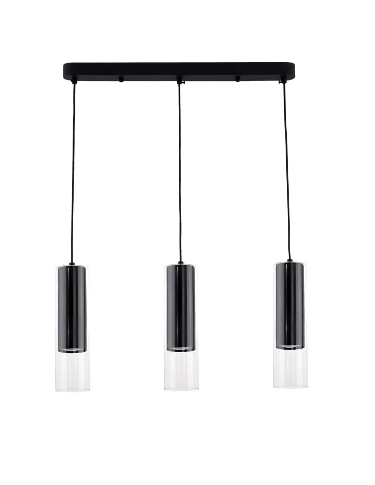 Lubicie takie kolory jak czerń i biel? Jeśli tak, to lampa MANACOR 3 LINIA WISZĄCA CZARNA sprawdzi się w Waszych wnętrzach. Z pewnością ten produkt zawiera kolor czarny, którym jest mniejszy, metalowy klosz. Białego koloru nie ma, ale za to jest szklany, większy klosz, który jest transparentny, tworząc jednocześnie ciemną i jasną warstwę. Większy klosz otacza mniejszy, tworząc kształt jednej tuby otwartej na dole. Takich kloszy w przypadku tego produktu są trzy sztuki. Są one rozmieszczone w jednej, poziomej linii, na metalowej prostokątnej podstawie w kolorze czarnym. Jeśli jednak chcielibyście aby oświetlenie MANACOR 3 LINIA WISZĄCA zawierała więcej koloru białego, to zachęcamy do zakupu zarówno tego modelu w kolorze czarnym jak i białym. Wówczas utworzy się piękny efekt oświetleniowy, który idealnie będzie pasował do aranżacji black&white. Lampa Manacor 3 linia wisząca, zawiera trzy źródła światła - GU10 i będzie pięknie rozświetlać nowoczesne oraz klasyczne wnętrza. Życzymy miłych i udanych zakupów!