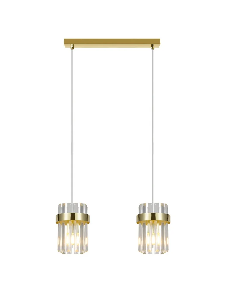 Złota lampa wisząca z kolekcji Vetro to połączenie elegancji i prostoty w nowoczesnym wydaniu. Podsufitka została wykonana z metalu w kolorze złota, a klosze z transparentnego szkła. Transparentne elementy efektownie rozpraszają światło, tworząc przyjemną atmosferę we wnętrzu. Model przeznaczony jest do żarówek z gwintem E14. Lampa doskonale sprawdzi się nad stołem, wyspą kuchenną lub w innych strefach, gdzie liczy się zarówno funkcjonalność, jak i estetyka.