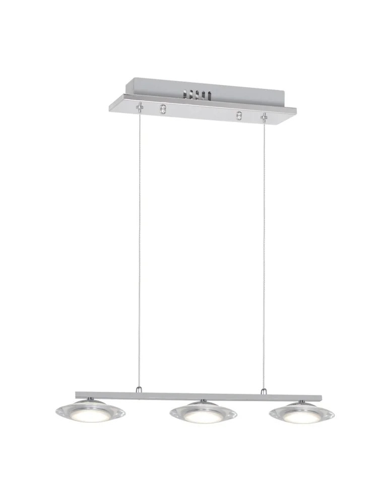 "Prezentowana lampa z serii Ellipse posiada miejsce na trzy źródła światła, a jej wysokość można regulować na przewodzie od 40 do 100 cm, dzięki czemu można dopasować ją do różnego typu pomieszczeń. Wyposażona w zainstalowane na stałe moduły LED o mocy 15 W, które odpowiadają 79 W tradycyjnej żarówki. Strumień świetlny na poziomie 1120 lm gwarantuje bardzo dobre oświetlenie nawet dużych pomieszczeń. Produkt został wykonany z metalu oraz akrylu w kolorze chromowanym.