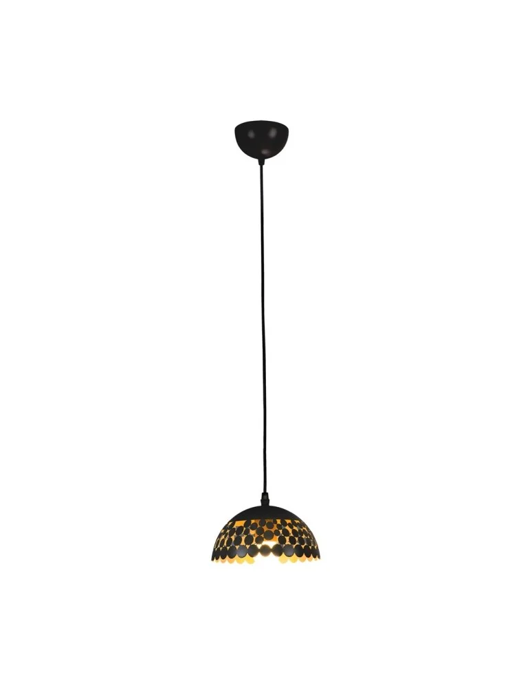 • Lampa sufitowa wisząca z jednym źródłem światła i kloszem o średnicy 18 cm, czarno-złota ML6135