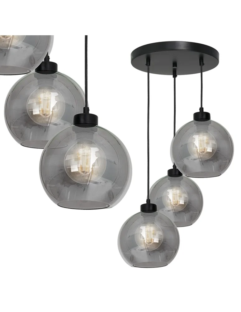 lampa wisząca z pięcioma źródłami światła transparentna, przydymiona, bursztynowa MLP65900, MLP6591, MLP6592