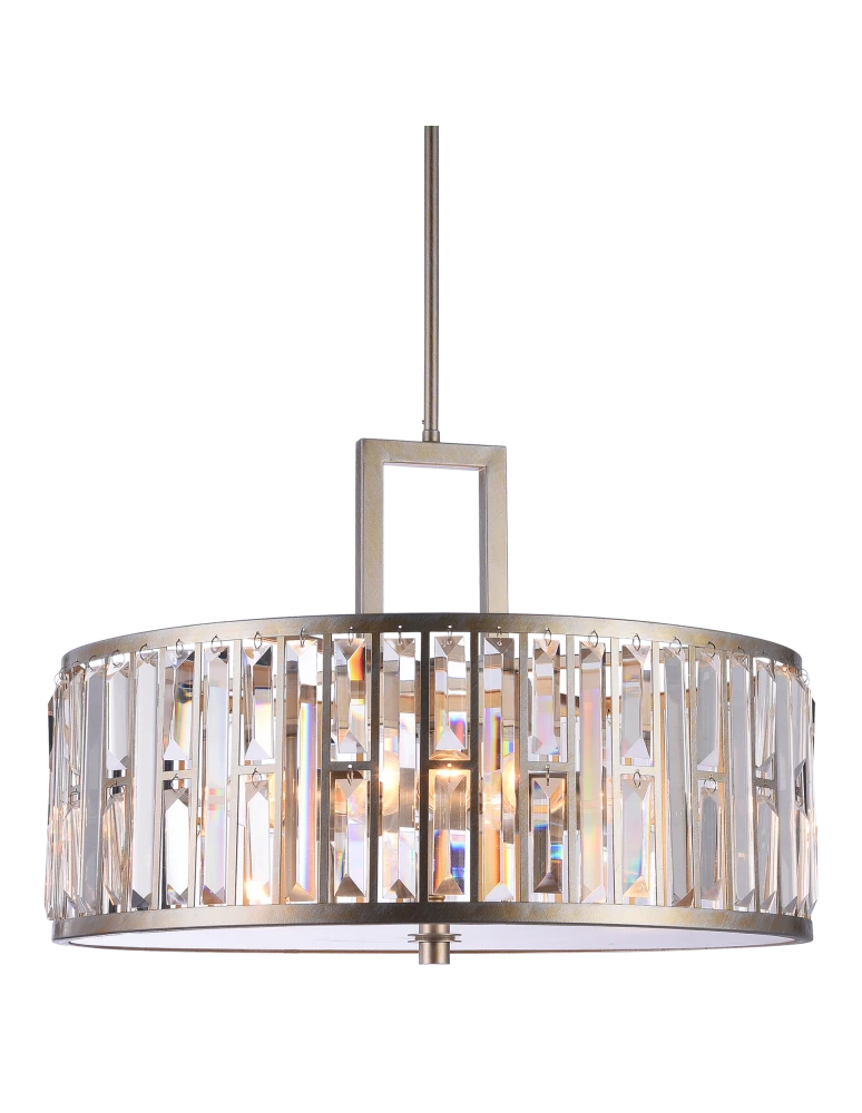 Luksusowa i efektowna.Metalowa rama, wraz z oprawionymi w niej kryształami pięknie rozprasza światło. Lampa, podobnie jak pozostałe z serii MOSCOW jest pokryta 2 kolorami - złotym i srebrnym, oraz szczotkowana co daje w efekcie kolor szampana. Dół lampy jest osłonięty mrożonym szkłem.
